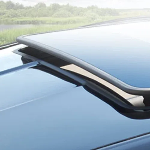 These sunroofs have a sporty look. The fabric-folding opening creates the largest sunroof opening available. The fabric is of the highest quality, and it is reinforced on the outside for added durability. The dynamic shape is a wind-deflector, and it comes with an illuminated control panel and full-power operation.